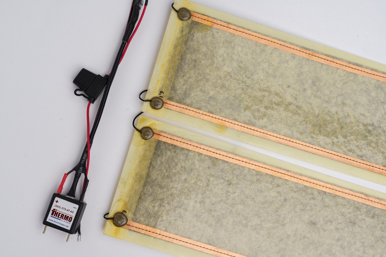 Состоит из: терморегулятора, блока предохранителя, дисплея экспресс диагностики (светодиодная информативная панель) и 2-х инфракрасных нагревательных элементов.